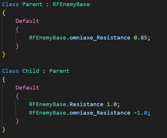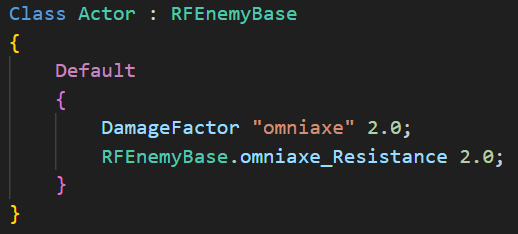 Another con of the new system is that new damage types are not created automatically like with Damage Factors. You can still use Damage Factors, but if you use both they will multiply together. New damage types have to be added manually into RFEnemyBase class which is easy but requires a lot of copy pasting.
