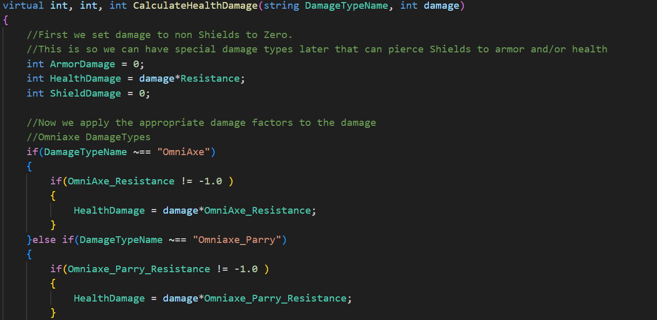 Armor and Shield Resistance both come with new virtual functions as well. They work in the same way as CalculateHealthDamage( ).